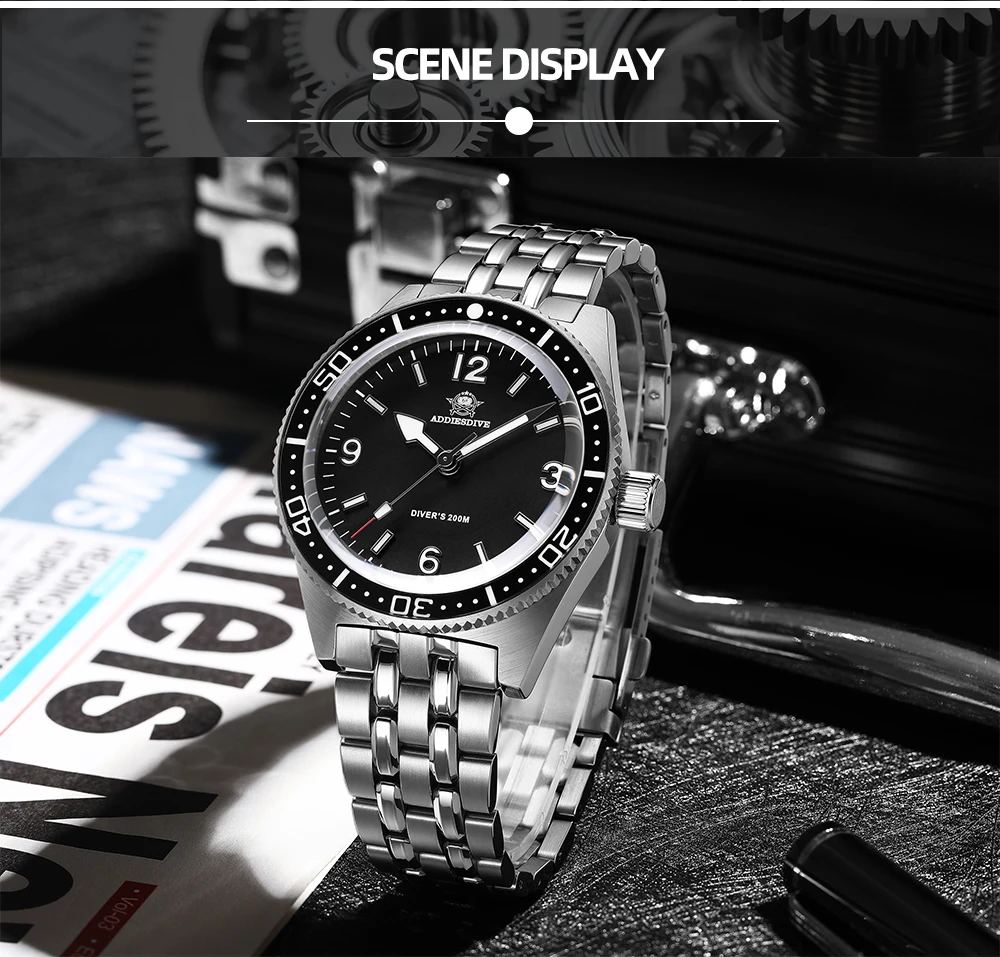 The ADDIESDIVE AD2033 is a premium men’s diving watch combining precision Japanese quartz movement with rugged, stylish design. Featuring the VH31A movement, it delivers reliable timekeeping with a 3-hand display and excellent energy efficiency.