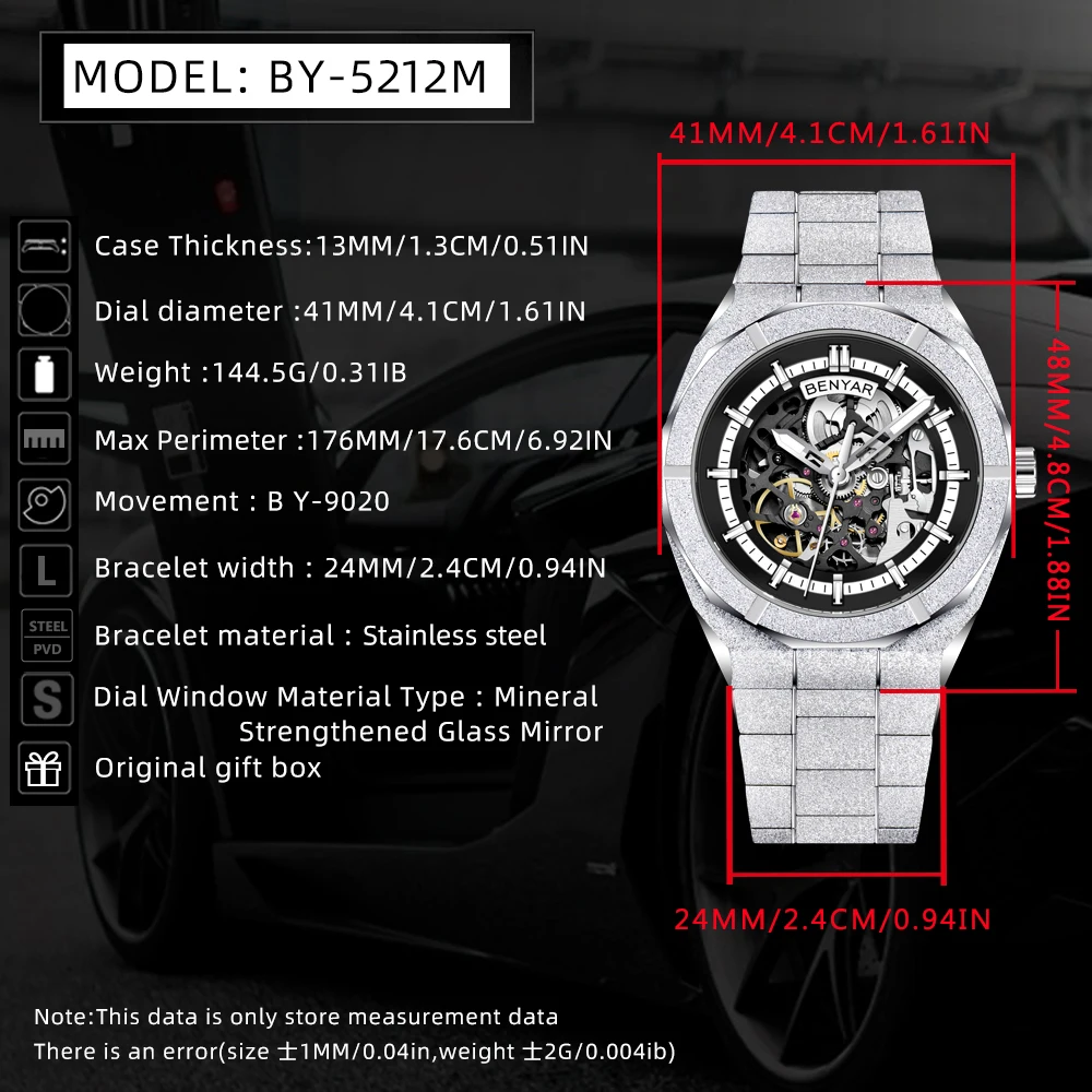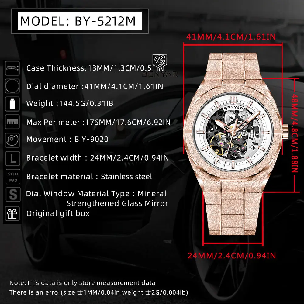 With its skeleton design, modern case shape, and automatic movement, the BENYAR BY-5212 delivers a beautiful, elegant, and luxurious timepiece at an affordable price—ideal for collectors, statement wear, or gifting.