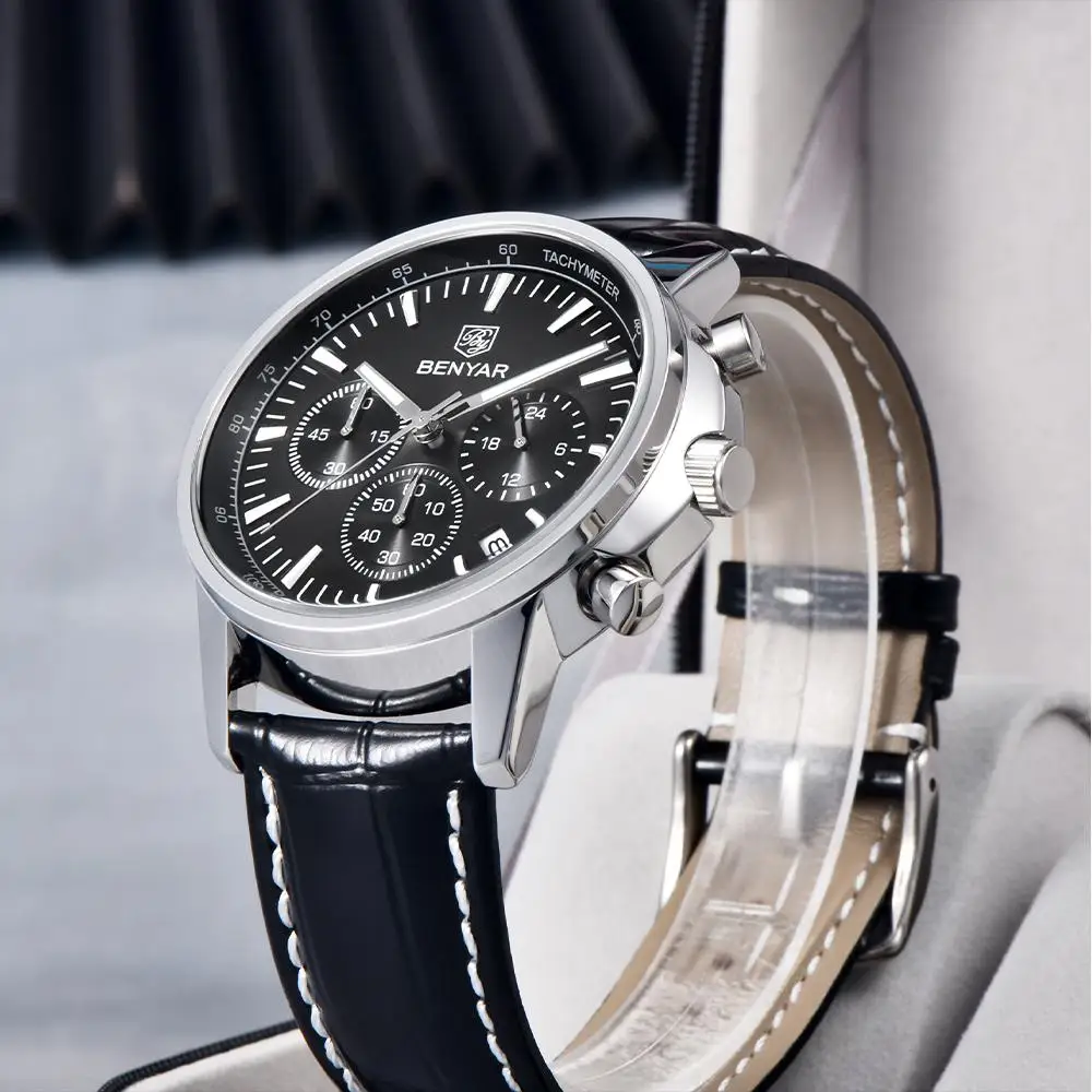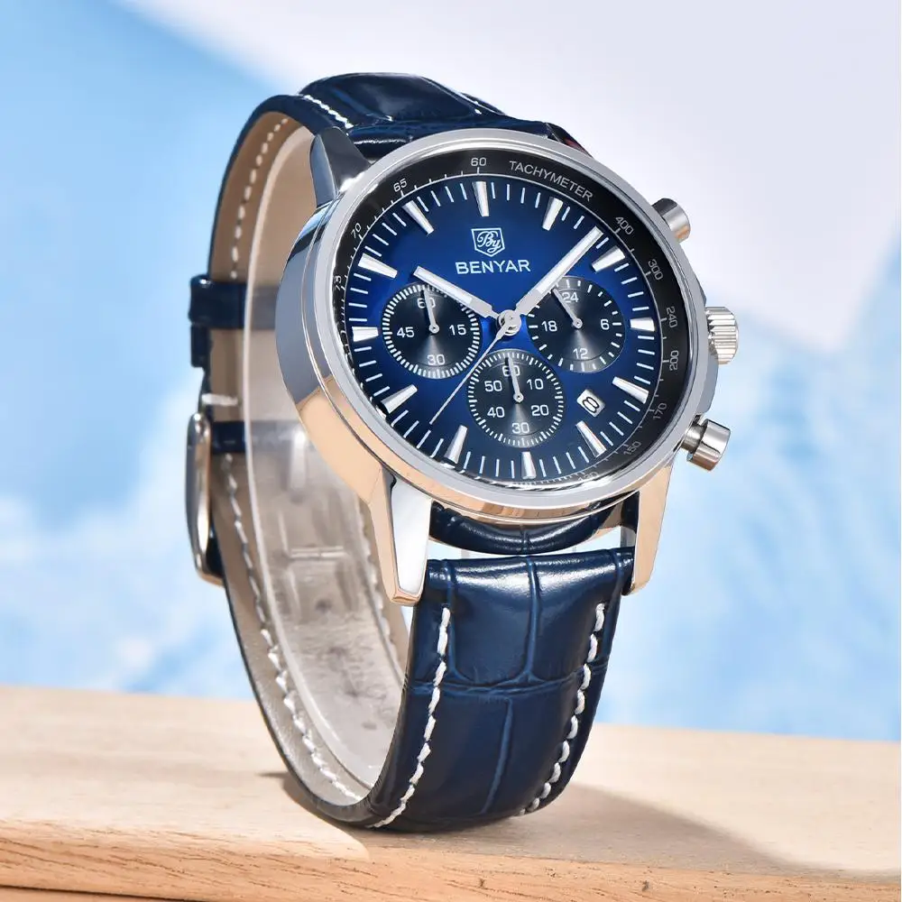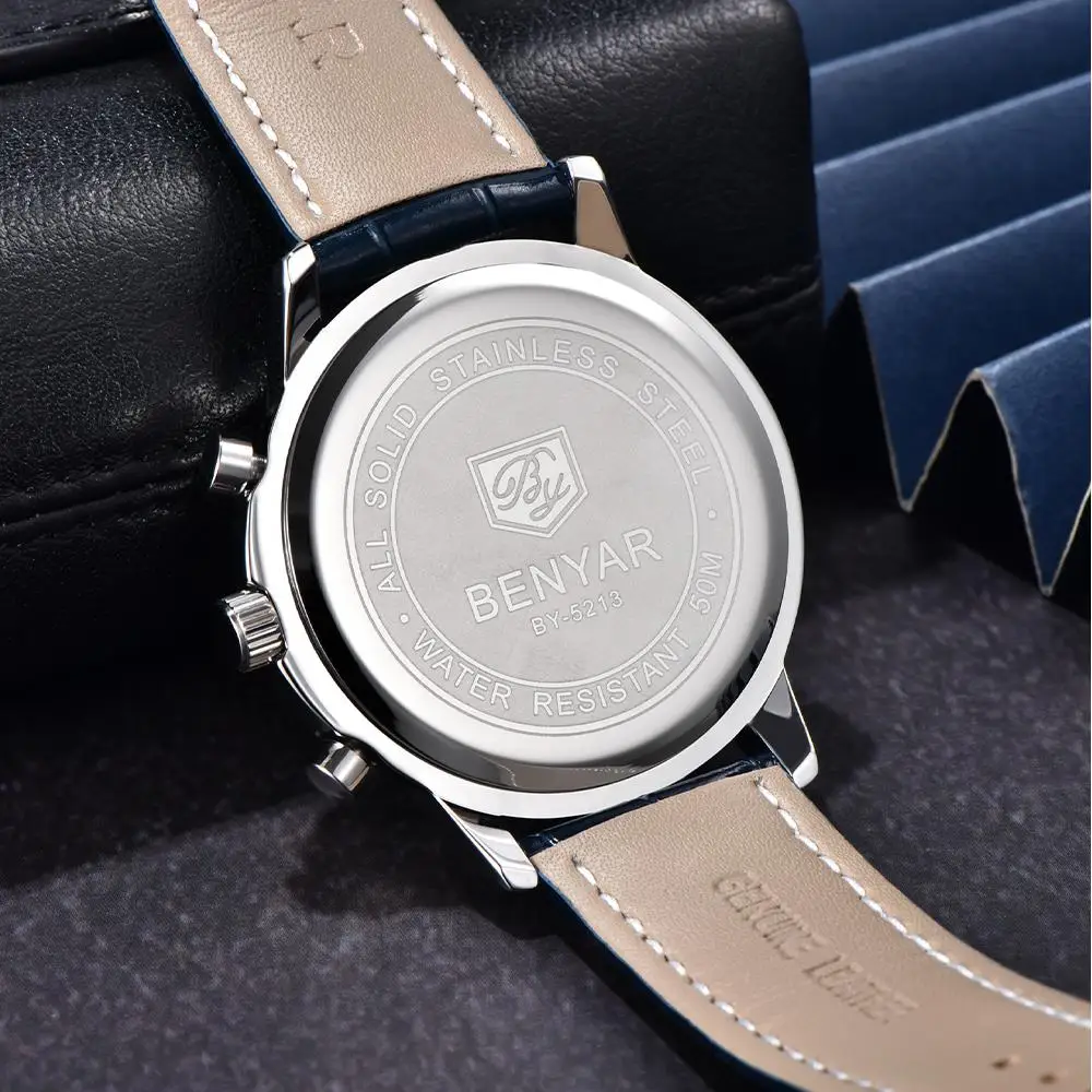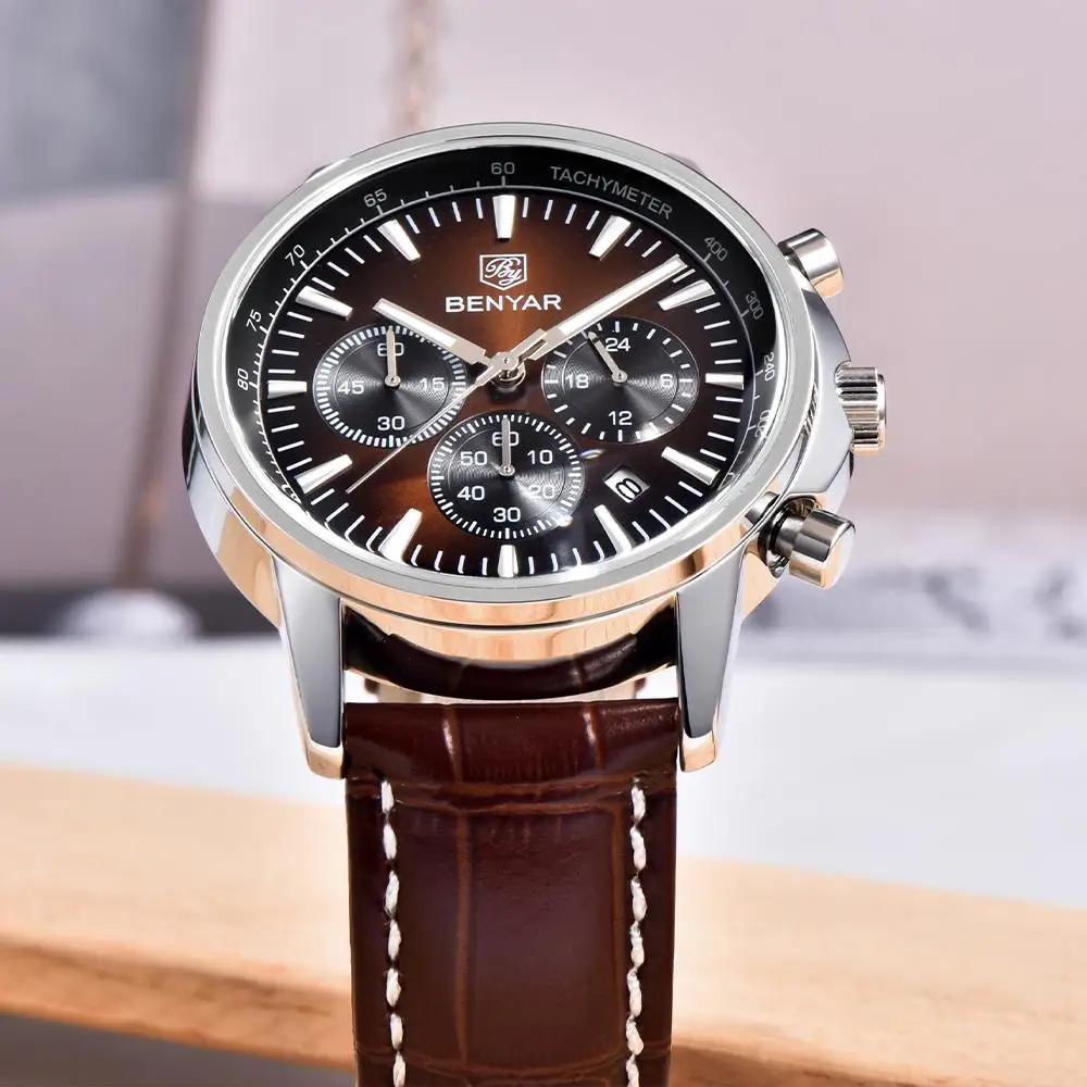 BENYAR BY-5213 Quartz Chronograph Watch – Leather Strap, Luminous, 3ATM