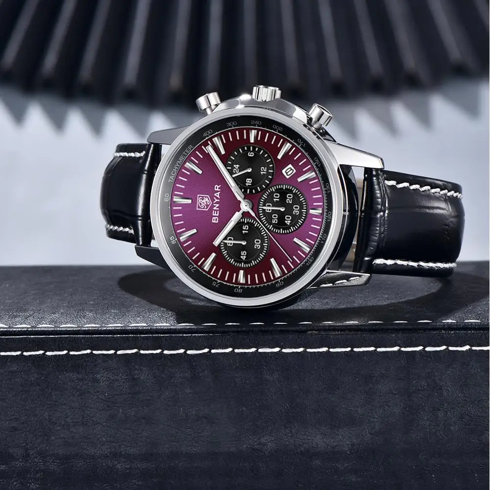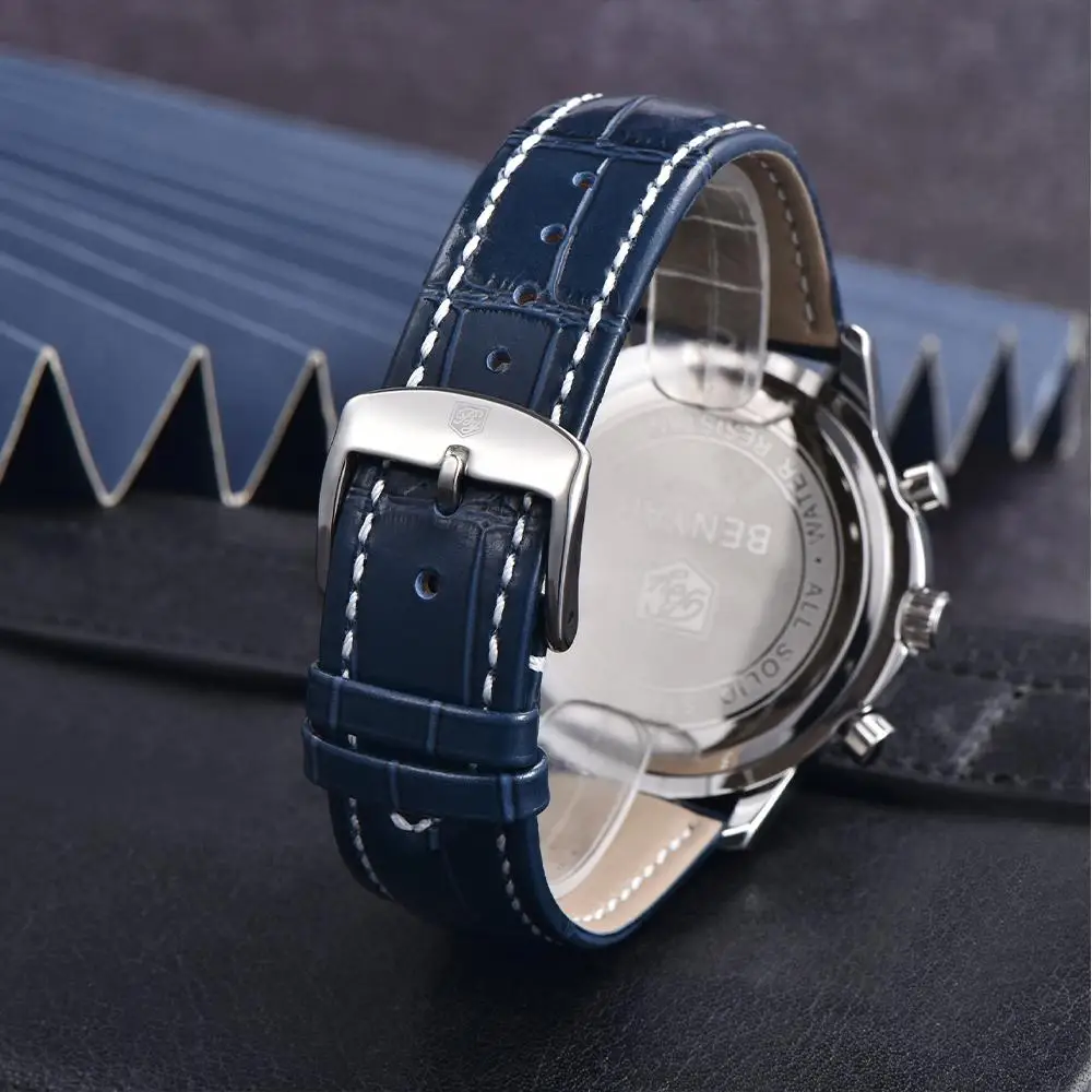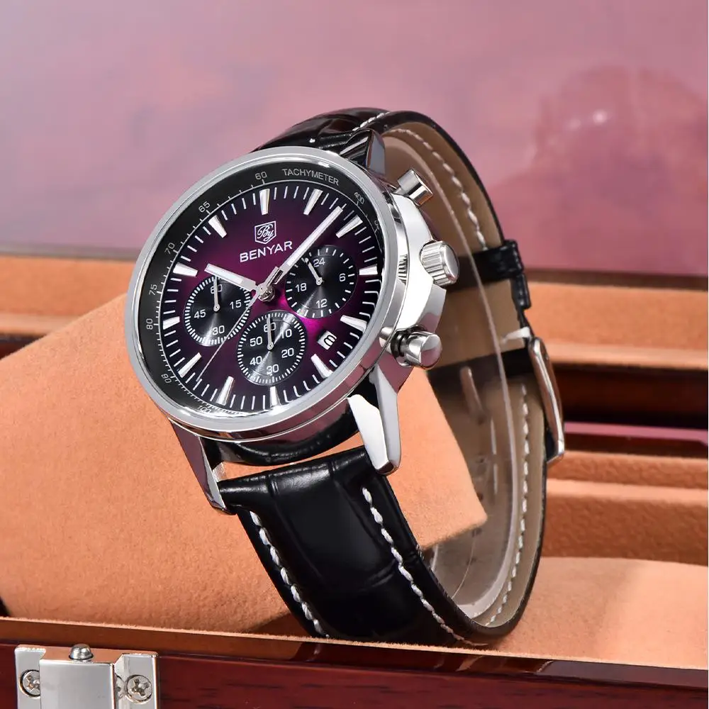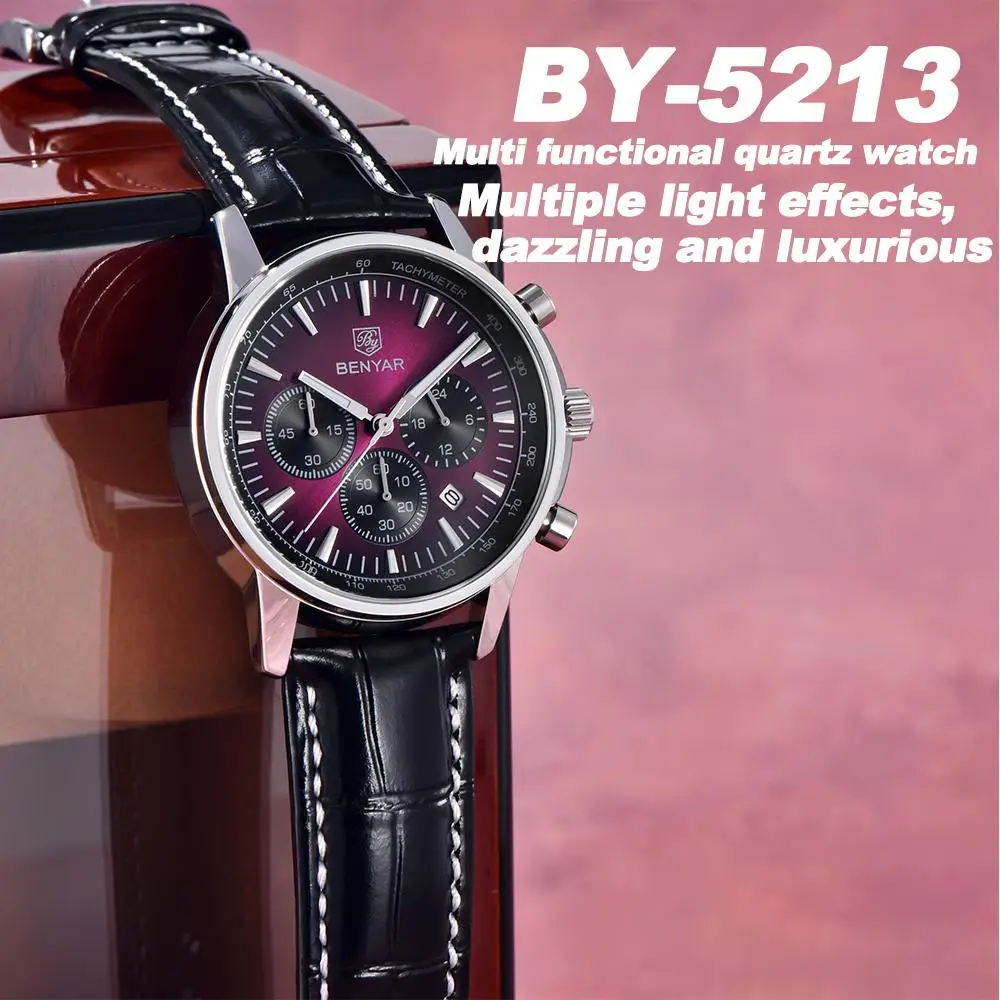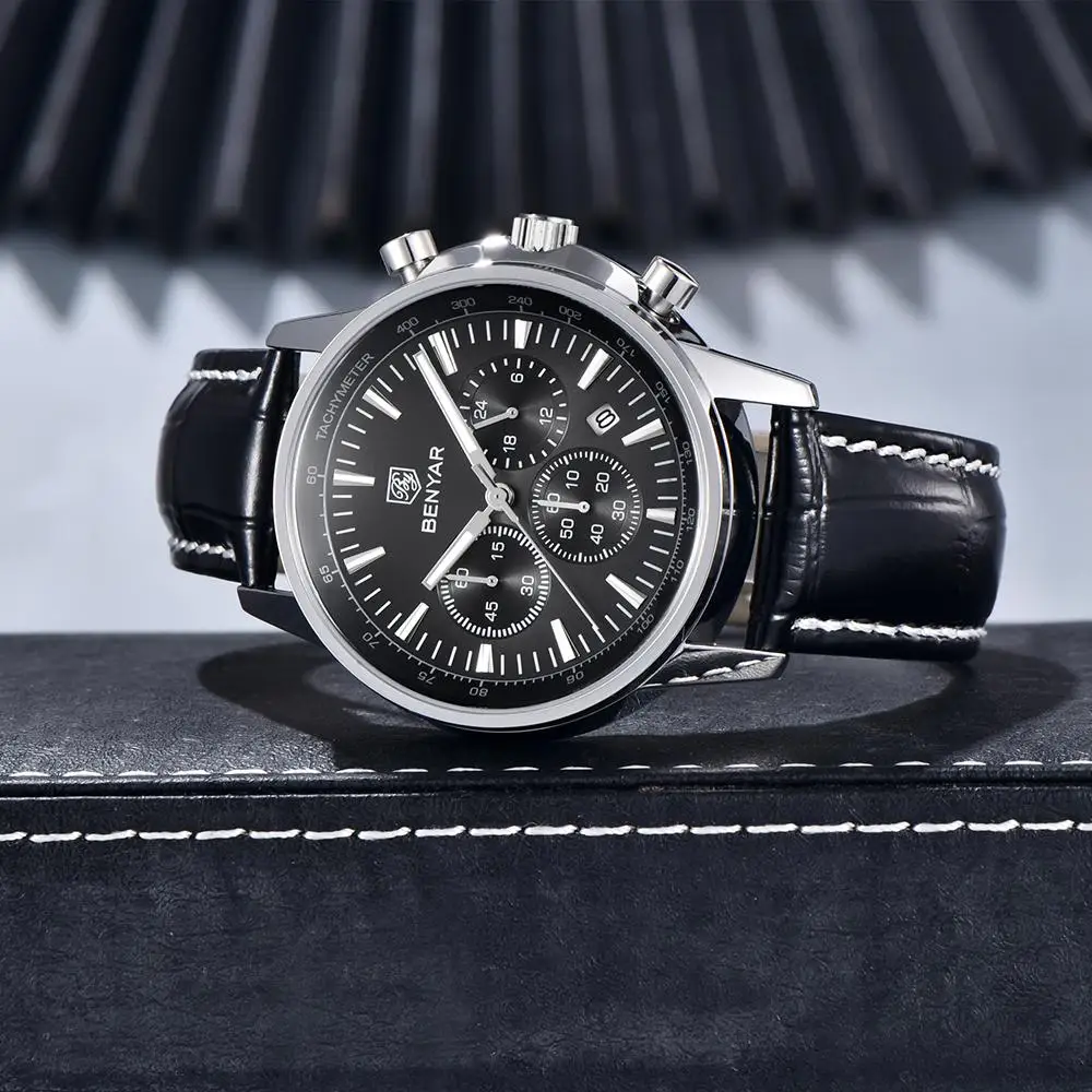 BENYAR BY-5213 Quartz Chronograph Watch – Leather Strap, Luminous, 3ATM