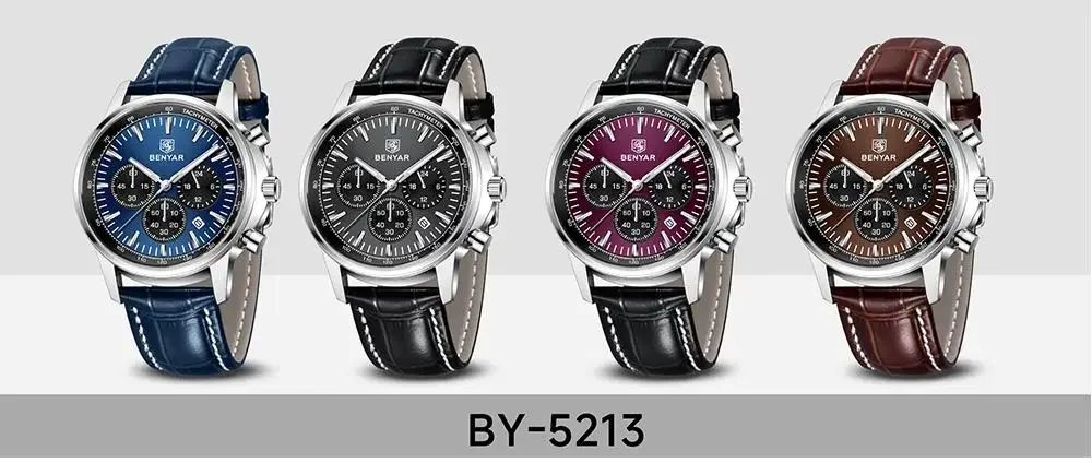 Finished with a comfortable genuine leather strap and classic pin buckle, the BENYAR BY-5213 combines sporty functionality with refined styling—delivering a beautiful, elegant, and luxurious timepiece at an affordable price.