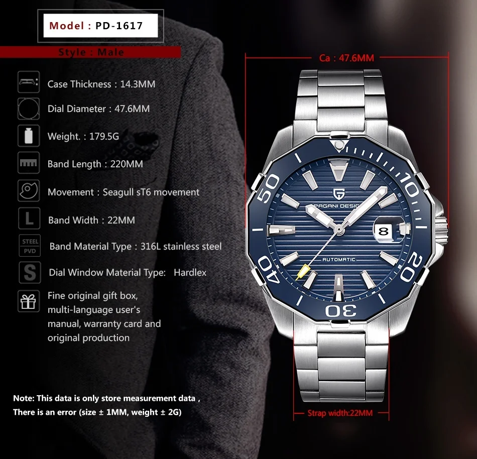 The PAGANI DESIGN PD-1617 combines military-inspired design with reliable mechanical performance — delivering a beautiful, elegant, and luxurious timepiece at an affordable price.